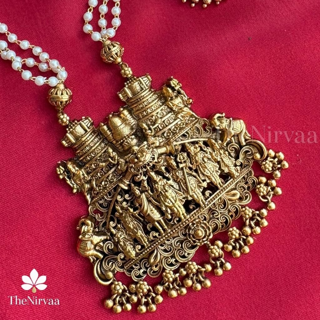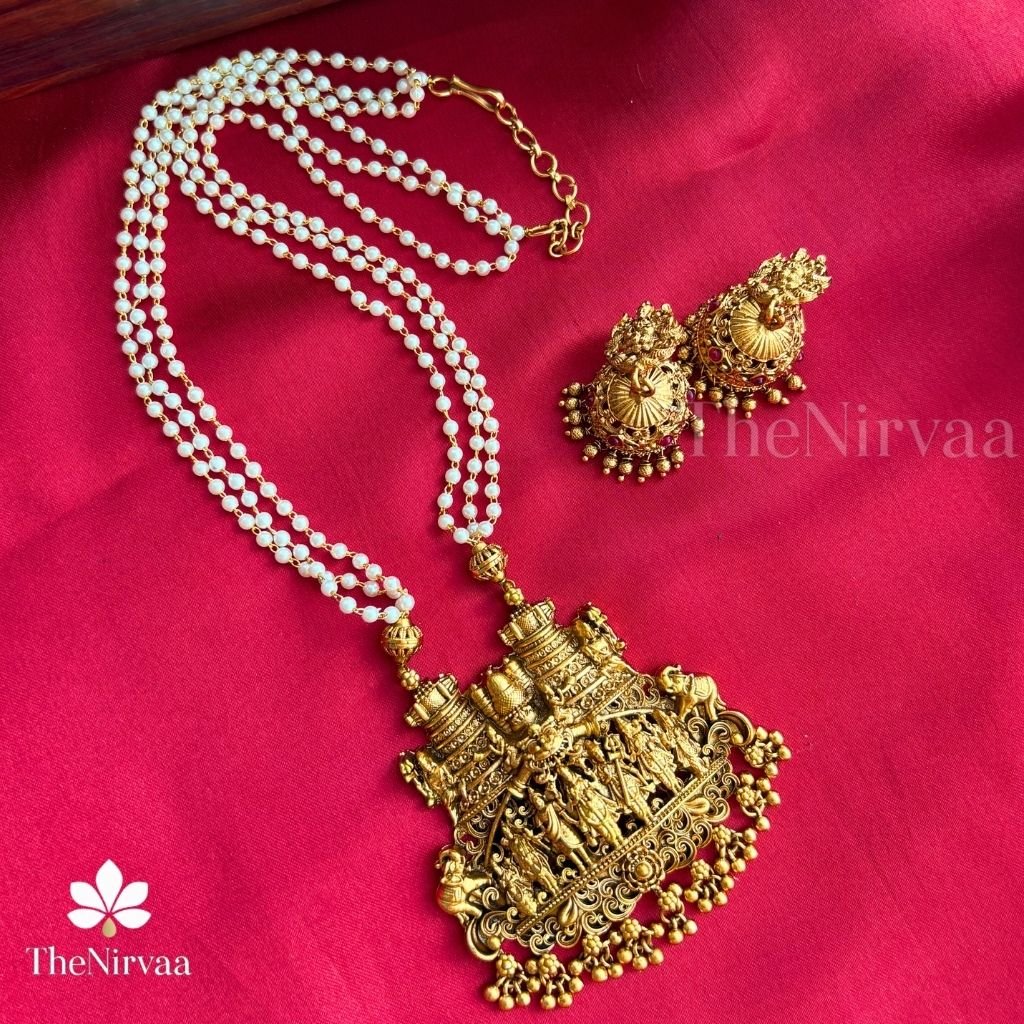 Govid Parivar Pendant with pearl chain haram Set