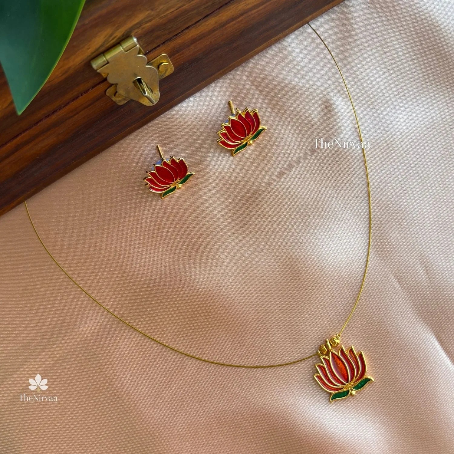 Delicate gold‑toned necklace set featuring a charming lotus motif with matching stud earrings.