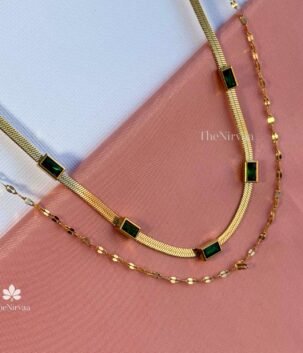 2 layer Green rectangular stone necklace